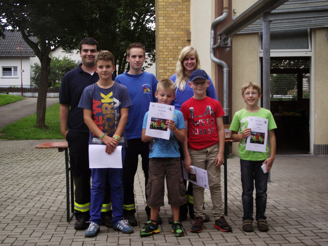 15 Kids entschieden sich in diesem Jahr dazu bei uns einen Samstag zu verbringen. Pünktlich um 10Uhr versammelten sich alle vor dem Feuerwehrhaus und eingeteilt in vier Gruppen zogen die Jugendlichen schließlich, in Begleitung je eines Jugendleiters, los. Dorfralley stand auf dem Programm. So wanderte man, geleitet von verschiedenen Rätseln, von Station zu Station. An jeder Station wartete eine andere spannende Aufgabe wie zum Beispiel „Gegenstände merken“ oder „Zielspritzen mit der Kübelspritze“.